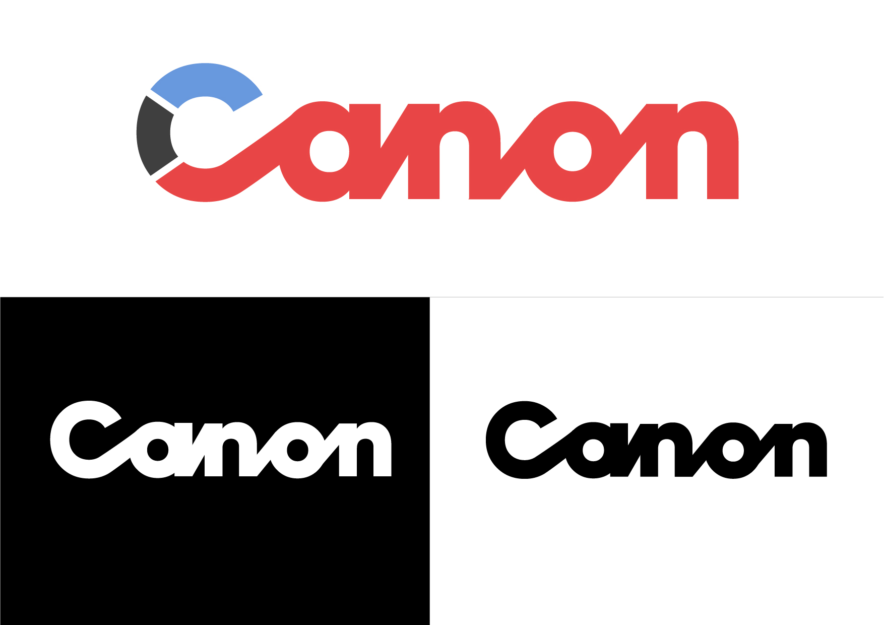 Este rediseño de Canon se desarrolló como un proyecto grupal con el objetivo de explorar una identidad visual más moderna basada en formas redondeadas. También busca representar las principales áreas de actividad de la marca: cámaras, impresoras/fotocopiadoras y dispositivos médicos.