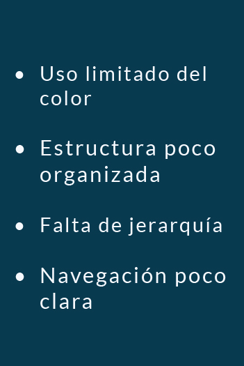 El proceso comenzó con un análisis de la web original, identificando problemas de estructura, navegación y presentación de la información. A partir de ahí, se definió una nueva organización de contenidos, trabajando la jerarquía y la distribución de las secciones para lograr una navegación más clara e intuitiva.